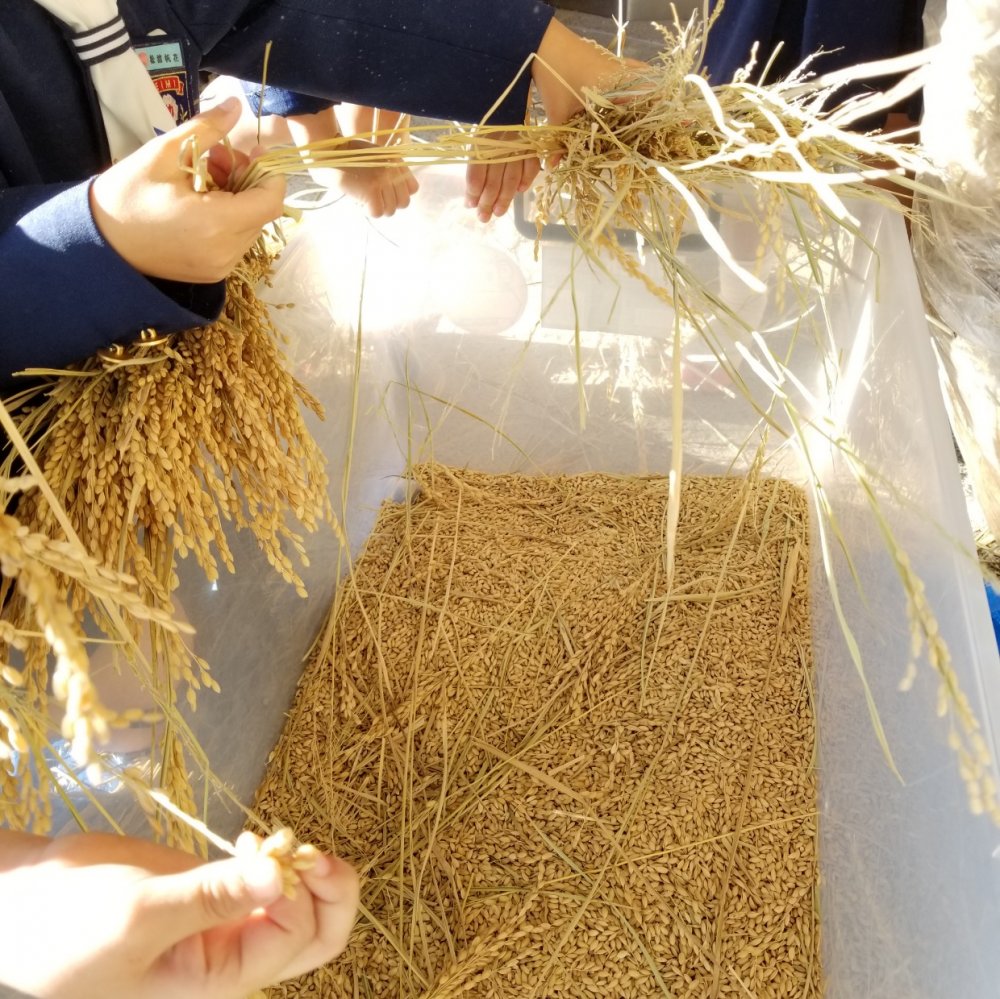 最近子ども達はお米の脱穀を頑張っています。 脱穀をしたいから早く幼稚園に来た~ってお友達もいました(#^.^#)