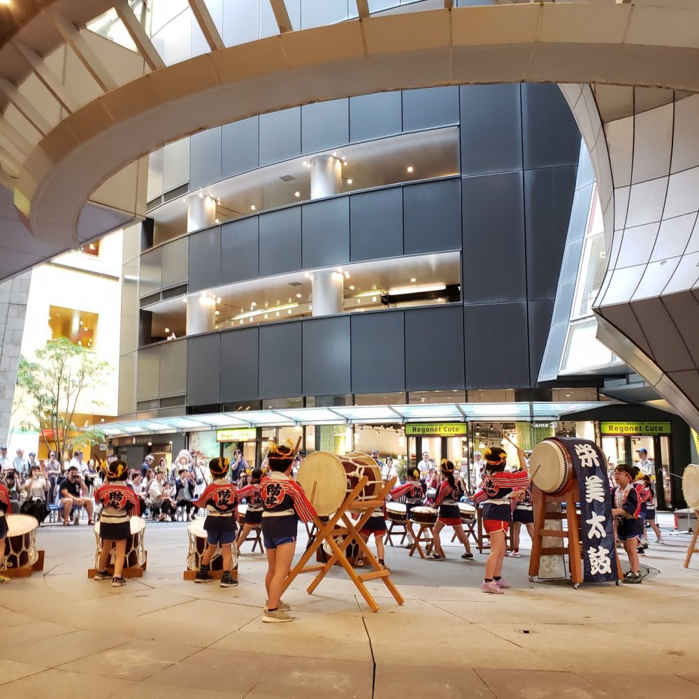 消防音楽隊のカラーガード隊や、栄美太鼓演奏、救急広報活動