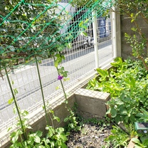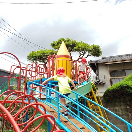 沢山の雨で園庭のアサガオのトンネルが少しづつ、育ってきているようです。