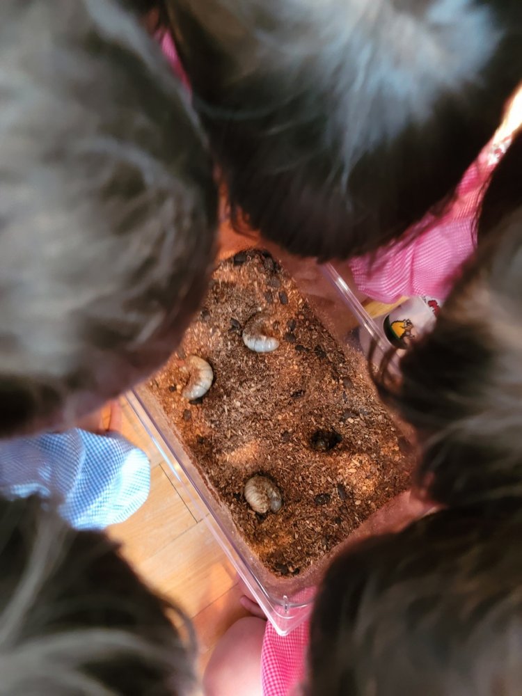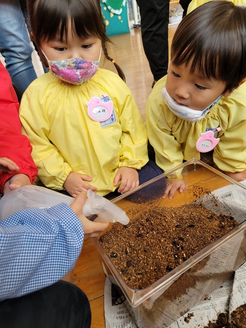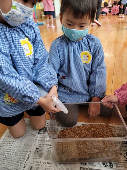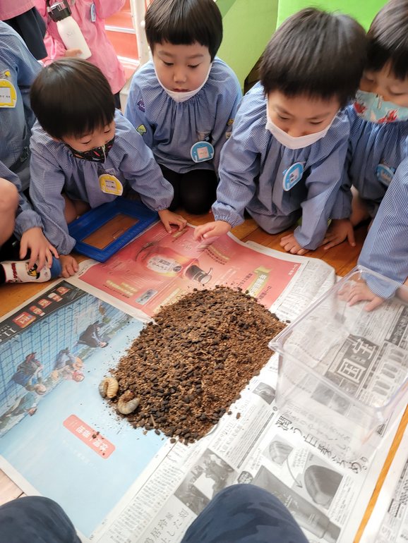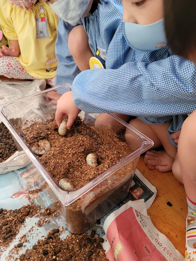 子ども達は、カブト虫の幼虫☆を大切に育てています。
