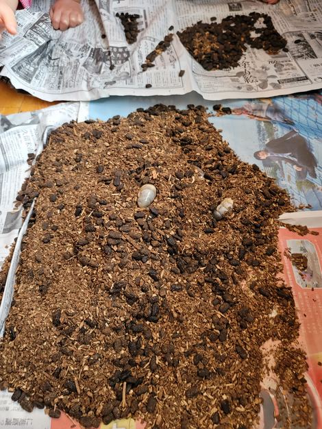 そろそろ綺麗な土に入れ替えてあげよう! 黒い粒が糞です。ホントに沢山(>_<)