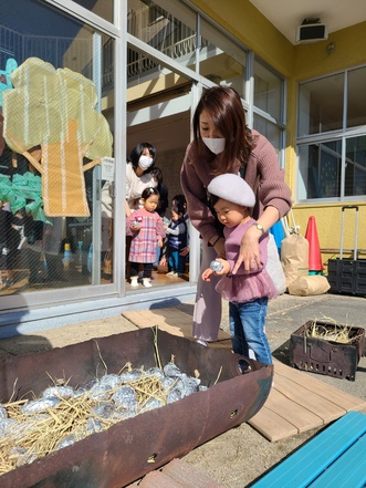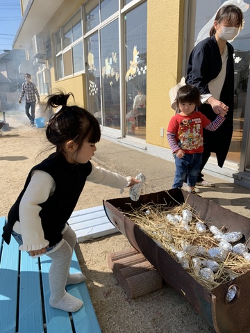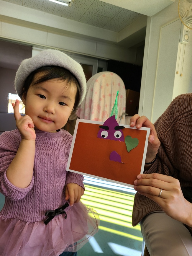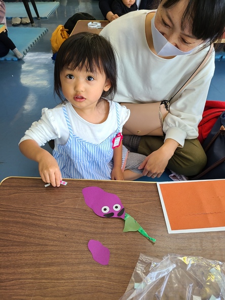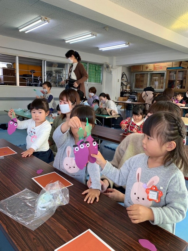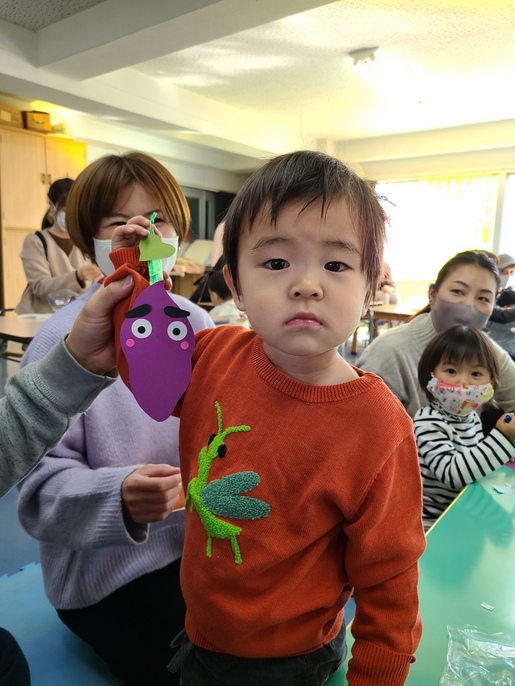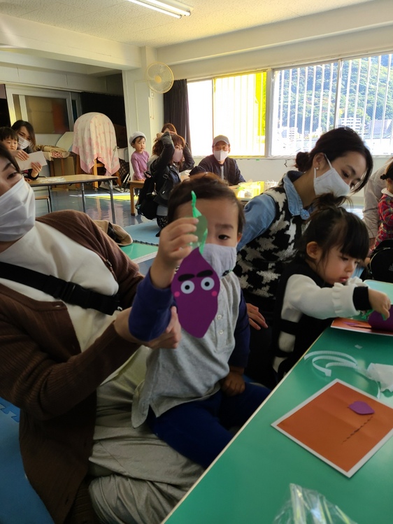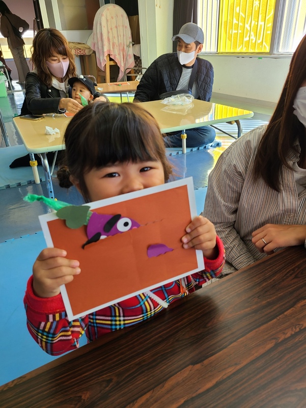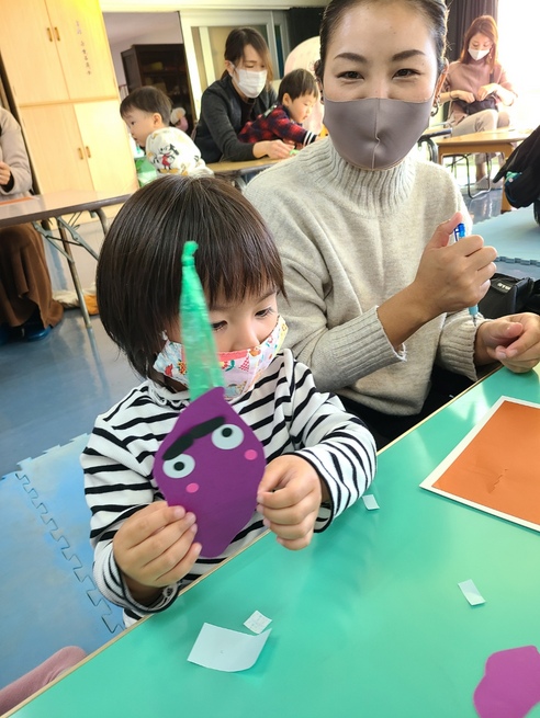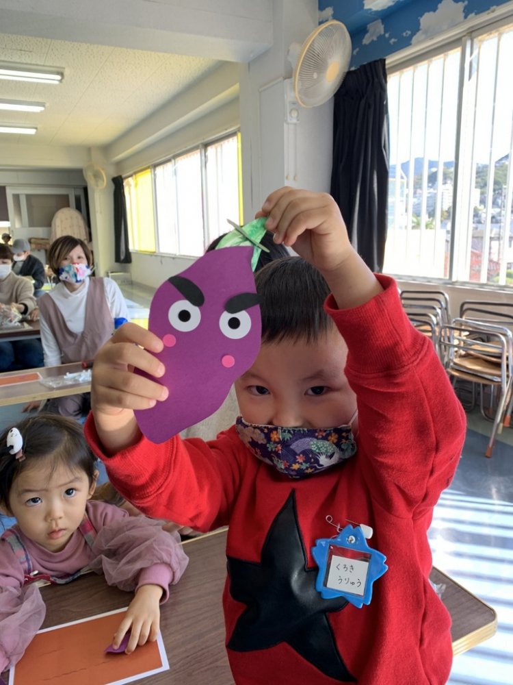 待っている間に、サツマイモの制作!それぞれ色んなお顔が出来上がりましたね♪