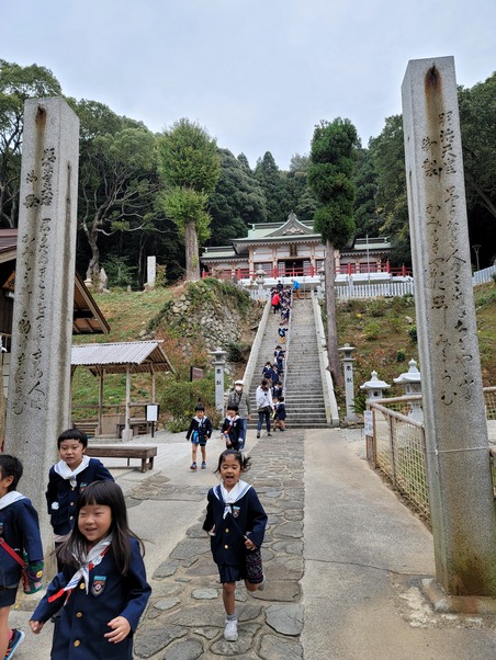 みんなで一緒に歩いて長い階段も頑張って登ったよ(^^♪