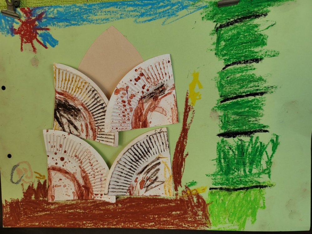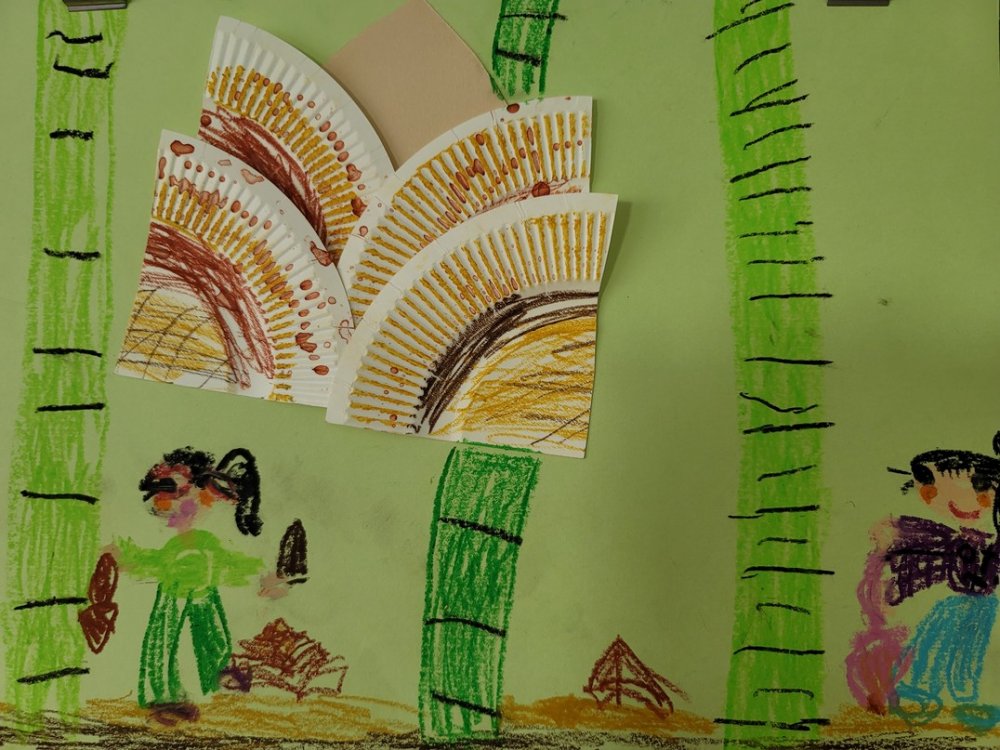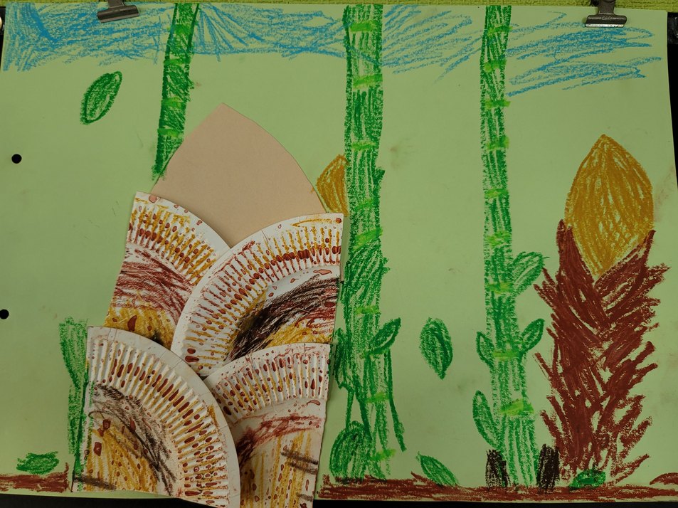 (タケノコの葉っぱはクルクルと回って落ちてくるんだね~♪)