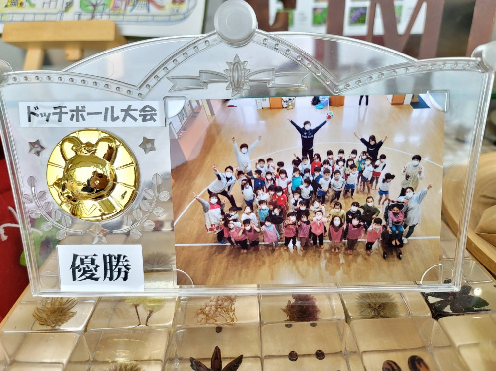 栄美保育園の先生方から優勝の楯、ばら組さんからメダルを頂いて大喜び(^^♪