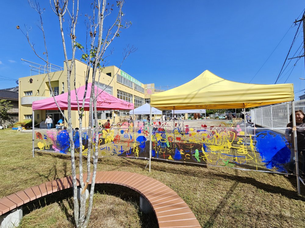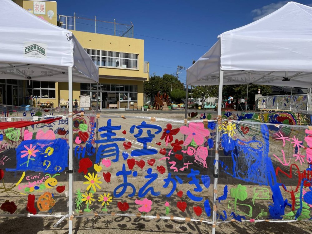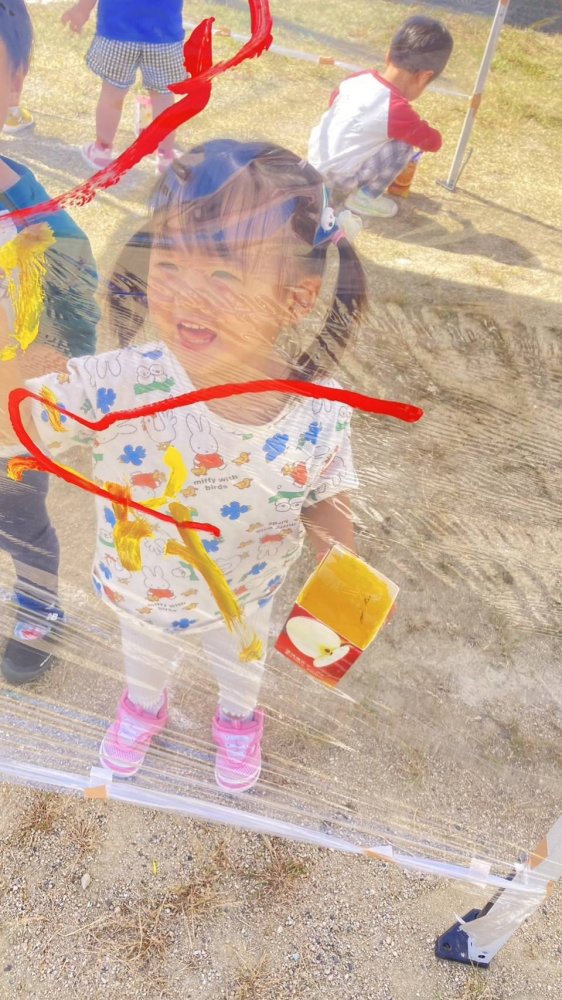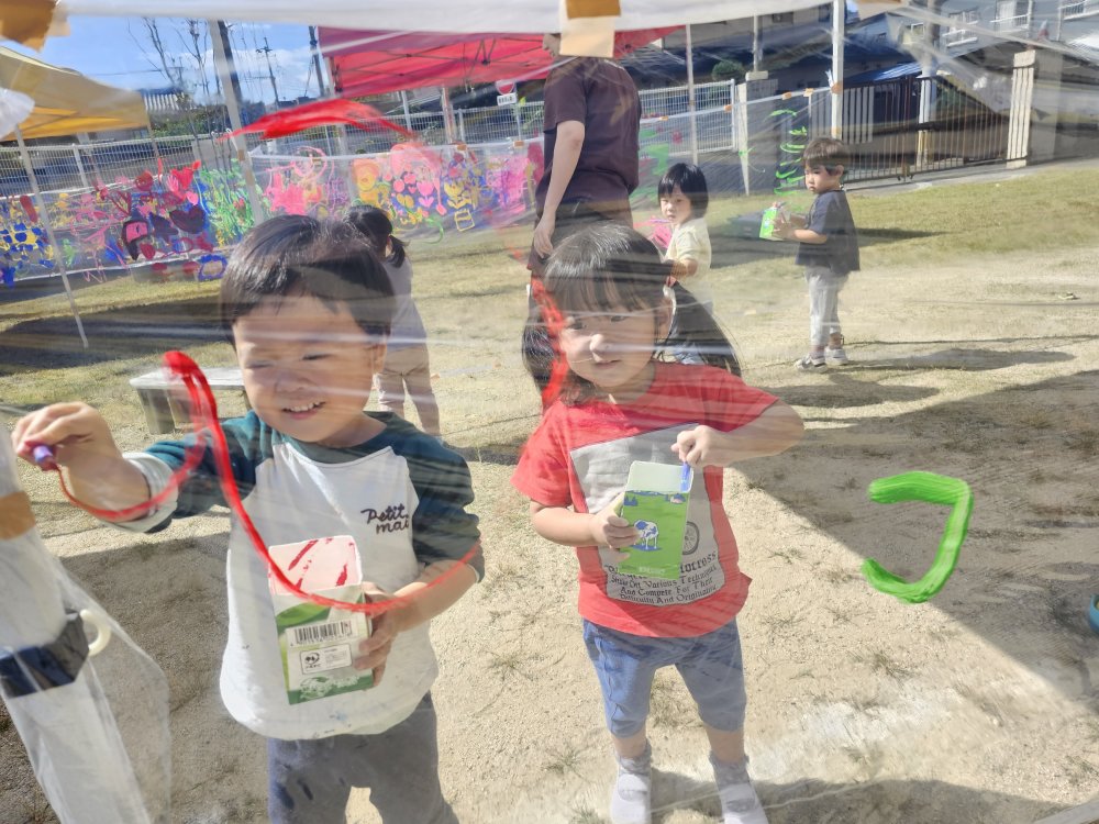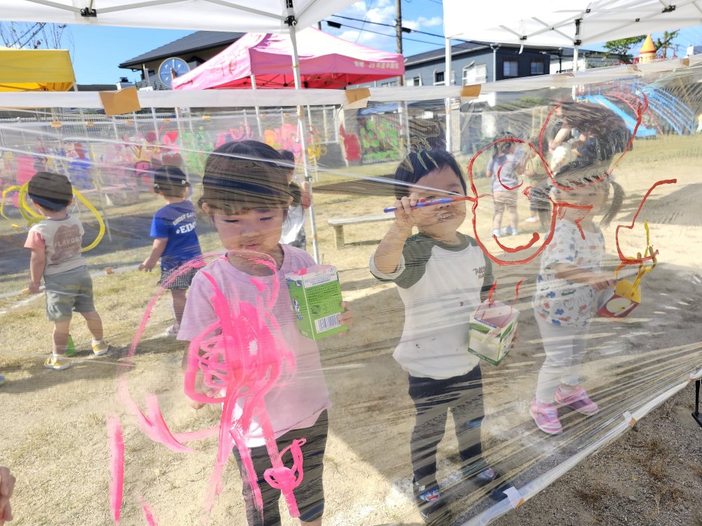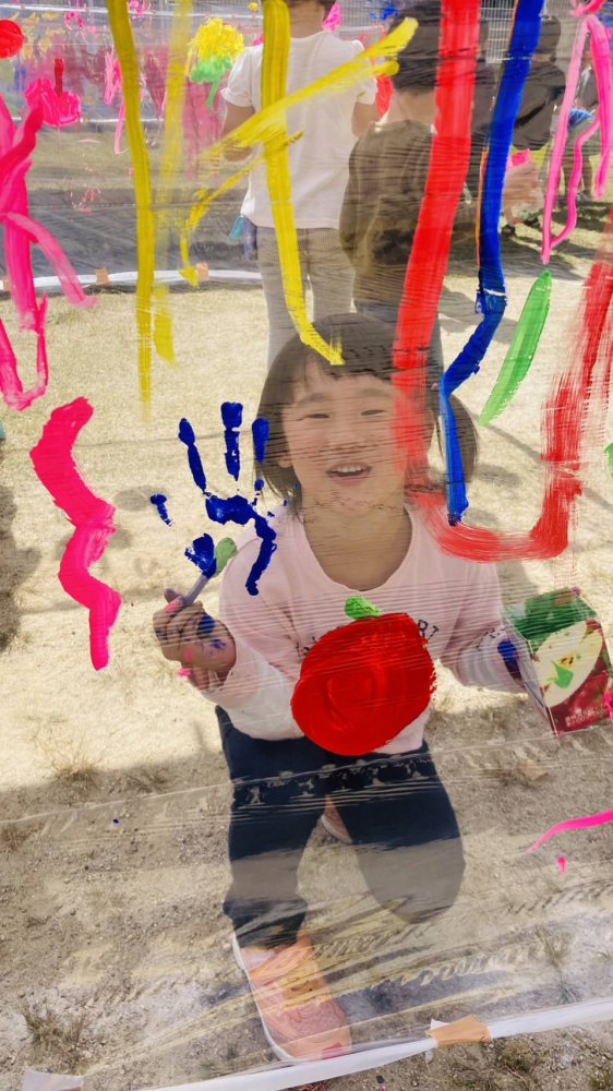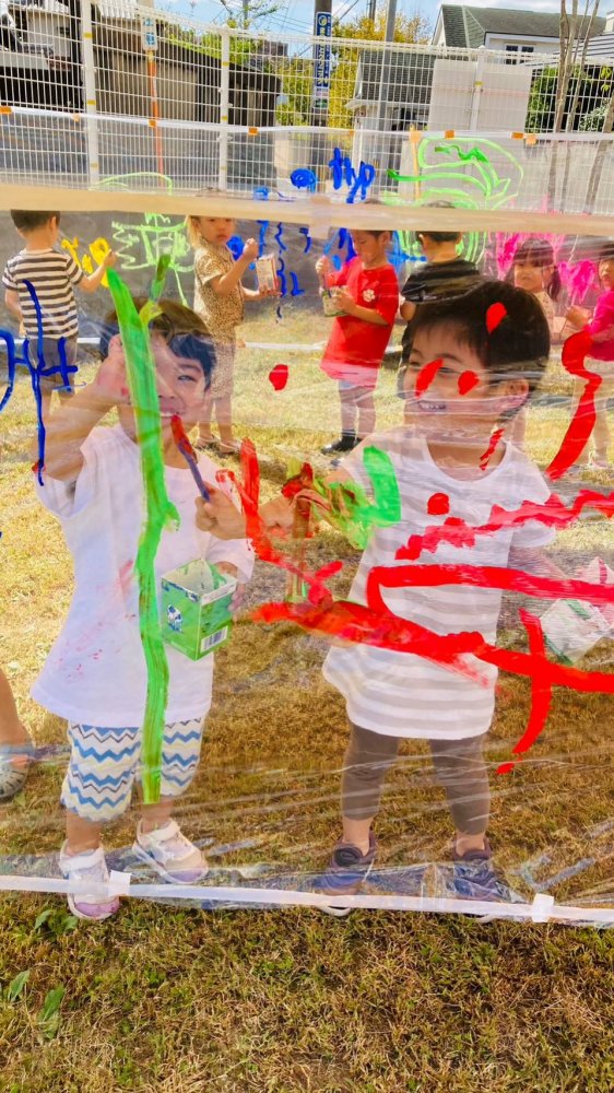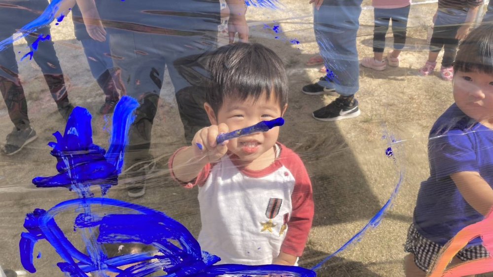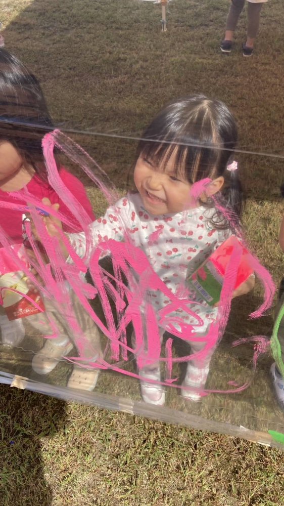 ぽかぽか陽気の中、青空お絵描きをしました。