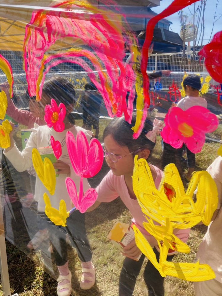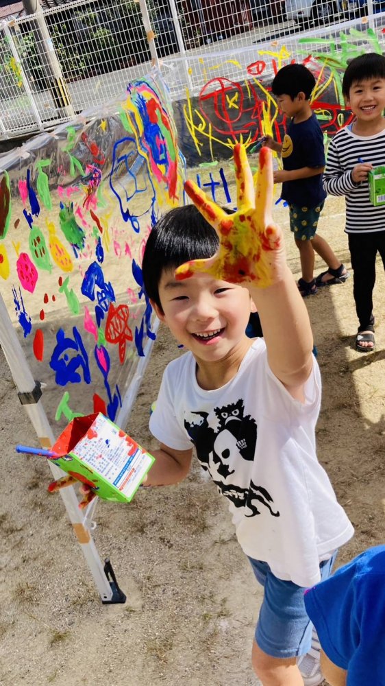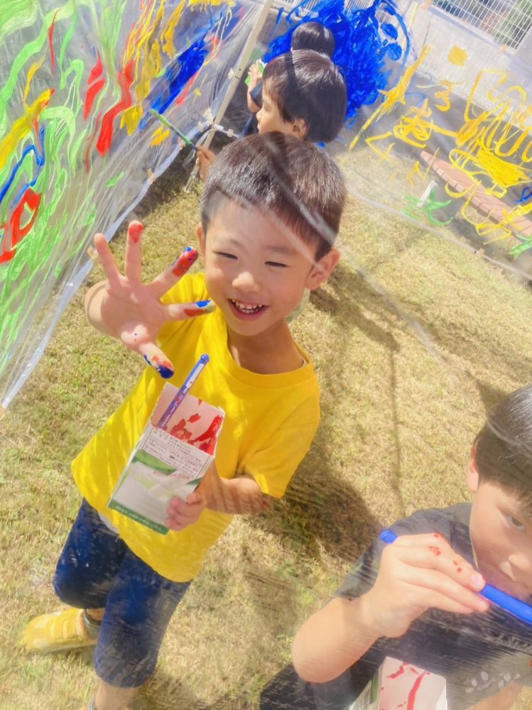 お空の下で想い想いの絵を自由に描く♪