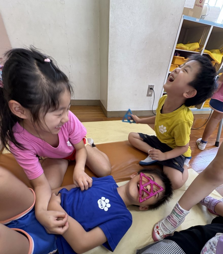 暑すぎて、園庭に水をまいていると、水もお湯の様に感じます。