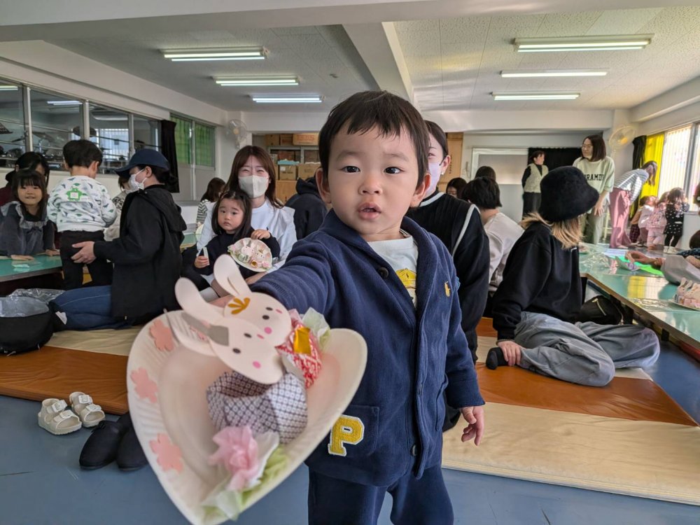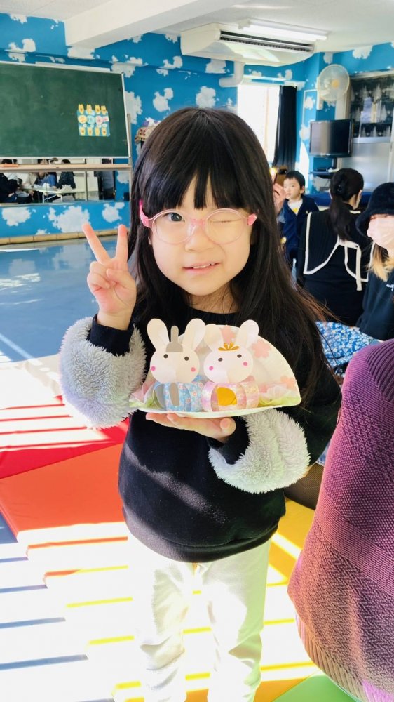今月は千代紙や紙皿を使って、ひな飾りを作りました♪